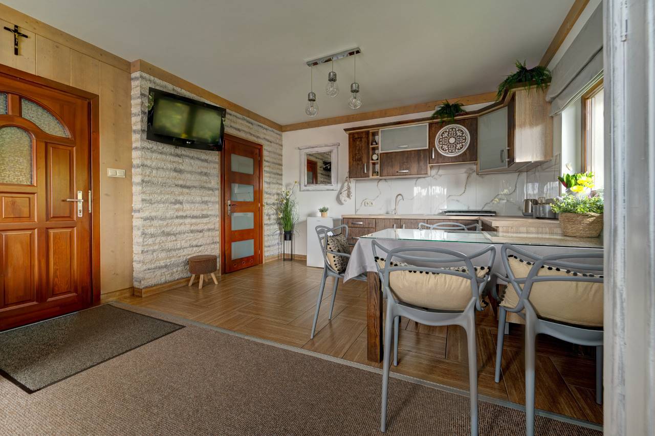 Apartament dla 3 osób, prywatne wejście. Łazienka w pokoju, aneks kuchenny w pełni wyposażony (lodówka, płyta grzewcza, czajnik, sztućce, talerze, kubki, garnki itp.). Możliwość dostawki.